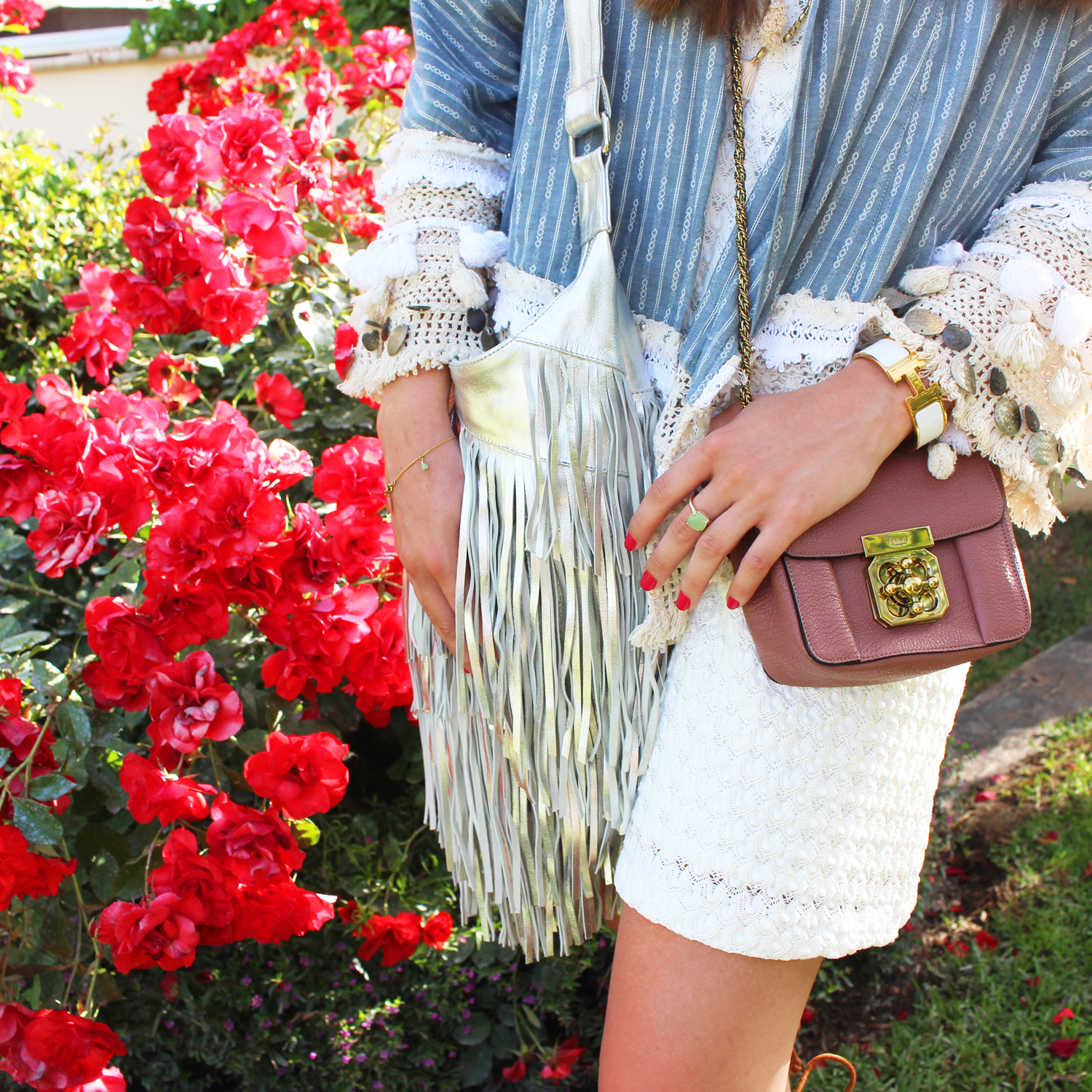 PINK Tip: If you want to wear your favorite mini bag all day long just go for a second bigger bag to get carry all your girlie stuff as two bags are better than one! We took our fancy fringe sacs to put in our sunnies, lipstick and the cutest poodle on earth