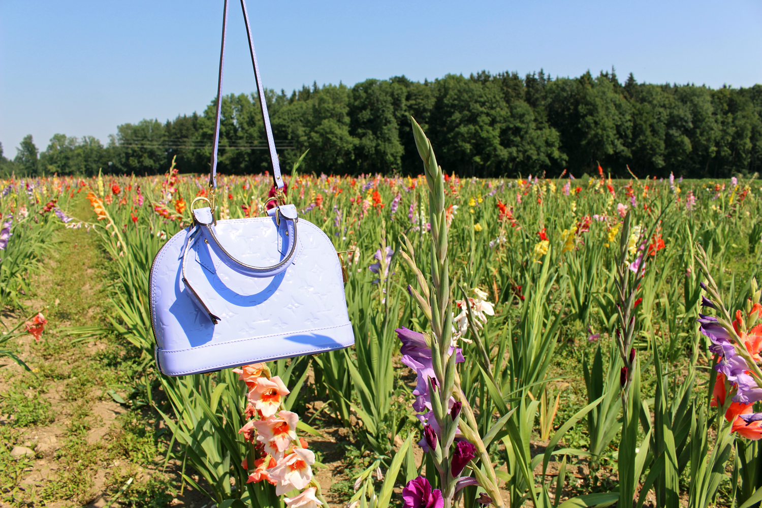 For a more glamorous Wiesn statement The Blond Macaron chose a real princess dirndl in glittery rosé brocade by Kinga Mathe, too. Perfect for a long party night all the way from Käfers to the famous after-Wiesn club P1. And if you shine and glitter get some more glitter on Louis Vuitton Alma BB in glossy candy purple beams radiantly into the camera.