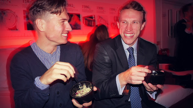 Thursday evening was the Tissot 160th Anniversary/Birthday party at Supperclub in Notting Hill. I went with some of my colleagues straight after work, and we met some of my friends there. Henry and Edd were told they had to be on their best behaviour with my colleagues in attendance (I didn't have to worry about Rich, he's always good!)...however they didn't listen and before I knew it glasses were smashed, Haribo were being thrown everywhere, and Edd was spritzing the waiters with cologne to 'make them smell nice'. The waiters weren't too impressed and wondered what on earth he was doing.