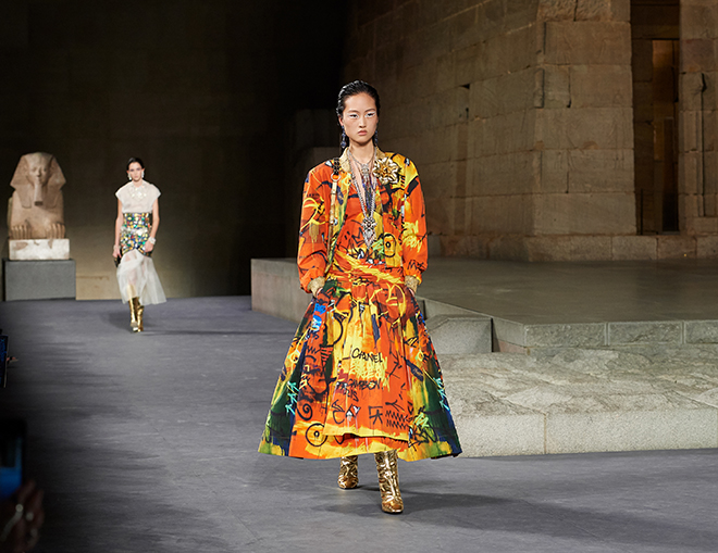 Kevin is above all a friend. Once again, it was an encounter. I held my first exhibition in Singapore in 2012, and Kevin was working in the same building. Kevin is someone who’s very well dressed and very British, but at the same time he was a skateboarder who understands urban culture. Therefore, when we met, it attracted me straightaway and there was mutual respect. I was impressed by his know-how, all his suits are sewn by hand. He asked me to make a painting for him and I asked him to make me a jacket, and that’s how it started. He made me a denim jacket, and for the lining inside, he used the silk scarf I’d done for Hermès. It was super chic and casual at the same time. I loved it. Then he made me a camouflage jacket. Then we had the idea of making jackets out of linen canvases that I paint. But it’s not the same linen that I use for my paintings, which is very stiff. He has a linen that is very fine, so I can’t put a lot of paint on it. He sent me the linen to Paris, I painted the canvases, sent them back to Singapore and he reinterpreted my paintings, cutting them to make jackets. The lining was taken from a colourful painting where I marked Kevin Seah, Kongo, Kevin Seah, Kongo. We made three or four unique jackets. They are priceless works of art that you wear. We did that in 2013, then I did the collection with Karl Lagerfeld in 2019, but what I did for Kevin was much more precious because everything was original. Chanel was a fabulous collection that they put in store windows worldwide. It was a completely insane experience. But I didn’t make the collection for Chanel. I met Karl who offered me to make a whole series of paintings at his atelier on Quai Voltaire, and he chose the paintings to make dresses and bags out of. It was a real meeting between creators.