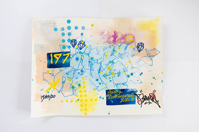 The first month was a month of forced rest, which allowed me to ease off from my hectic pace in 2019. The second month, as I live next to my studio, I went directly to my studio and all I did was work. I worked on large formats and drawings. It was a moment that really inspired me, that especially inspired in me a lot of gratitude to the medical personnel, who have a dedication to their profession, saving thousands of lives with ridiculously little means. So I proposed a project to the Paris hospitals: I donated a painting to the Hospitals of Paris – Hospitals of France Foundation, which they sold at auction to raise funds to help these hospitals. My second initiative was an installation at Lariboisière Hospital to thank the nursing staff directly, and then I made a digigraph of this work, which I’m currently selling via my website, where all profits will be donated to the hospital. These guys had no masks and wore the same PPE while treating several people, when usually they’re supposed to change them each time. They had to wear cooks’ outfits to work. It was completely crazy. It’s absurd in a country like France. That’s why I wanted to serve, but I felt so helpless. As an artist, I wanted to bring something more, so I carried out these actions during the confinement. I also drew and painted a lot. It was even easier to create because it was very inspiring and I was blocked in one place, when normally I spend my life travelling, meeting people for projects, going abroad to exhibit my works. I was stuck for over two months in my universe developing my e-commerce and things that I wanted to do or that I could push a little further.