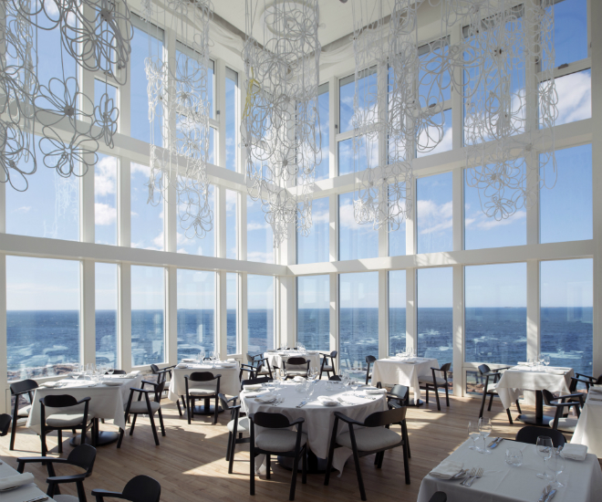 Set on the jagged rocks of Canada’s easternmost reaches, Fogo Island Inn brings modern luxury to an offshore, isolated island that’s said to experience seven seasons and envelop guests inside a blanket of North Atlantic silence. Held up on stilts, the striking, contemporary building has 29 guest rooms that offer floor-to-ceiling views of their dramatic island surroundings and feature hand-crafted quilts, as well as some wood-burning stoves.
