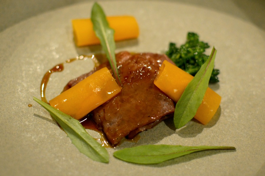 Next up was the Kingfish with picked kohlrabi and apple cucumber. Apple seemed to be the theme of the night, as it featured in a few dishes. Kingfish is one of my favourite fishes, and served raw this was probably my favourite dish of the night. In London you go to top Japanese restaurants and think the fish is fresh...then you come to Australia and realize just how different fresh fish tastes.