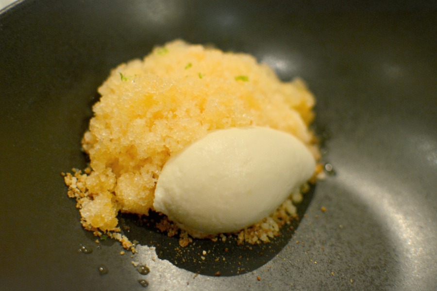 Thankfully dessert make up for the disappointment of the meat dishes. After a tour of the kitchens (literally the cleanest restaurant kitchens I have EVER seen), we moved onto dessert, starting with an exceptionally tasty palate cleanser of apple granita with apple jelly. The granita tasted a little like an apple snow cone, or a fancy slush puppy without the liquid, but the acidity of the apple was delicious and reminded me of that first bit of a Granny Smith apple before the sweetness arrives on your tongue.