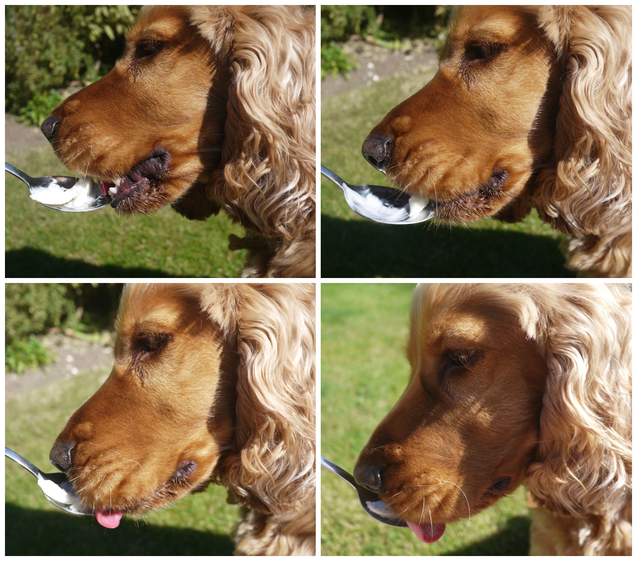 After finding out that natural Frozen Yoghurt is good for Dogs, we just knew that we had to see if Dylan liked it. We put a large scoop of the natural YooMoo on a spoon, and held it out for him...as you can see, he loved it! It was a hot day so was the perfect refreshing treat for him.